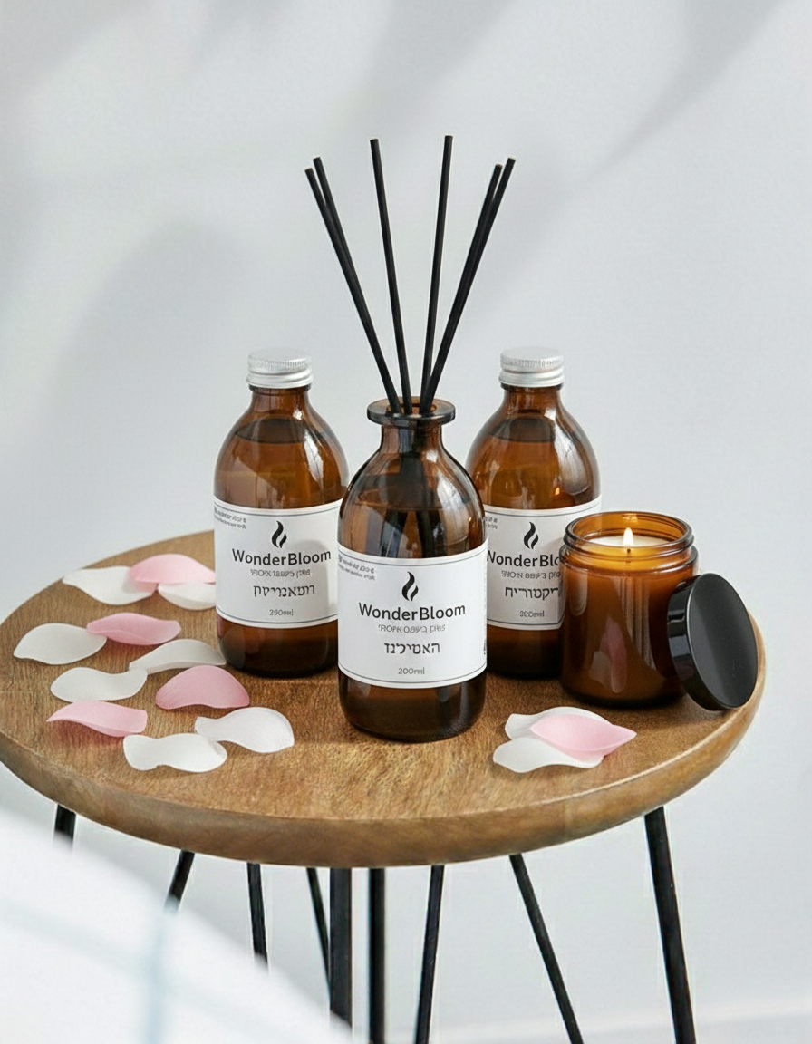 ב-WonderBloom אנו שואפים ליצור חוויית ריח נקייה, אלגנטית ואיכותית, שמעצימה את התחושה ואת האופי של כל חלל מחדש.